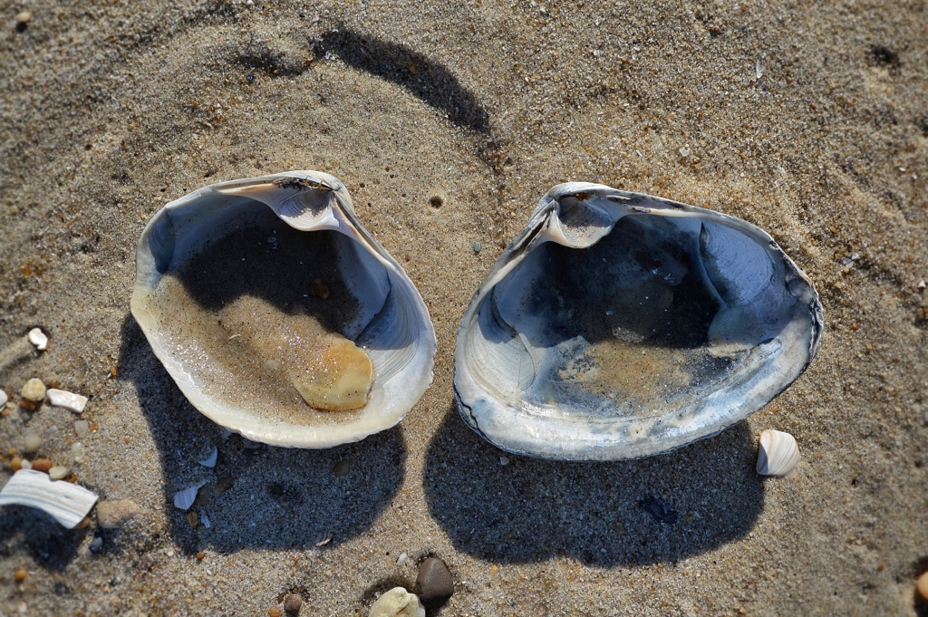 Beach Chat Posted on May 8, 2013 by Maggie Beck 0 Perfectly positioned – as if leaning in for a beach chat on a sunny day. These two shells were the only two intact clam shells in that section of tide line. Share this: Click to share on X (Opens in new window) X Click to share on Facebook (Opens in new window) Facebook Click to email a link to a friend (Opens in new window) Email Click to share on Pinterest (Opens in new window) Pinterest Like Loading... Related