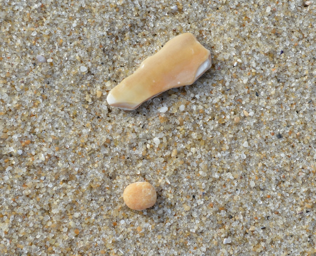 Punctuation / Exclamation! Posted on June 13, 2013 by Maggie Beck 0 Even though this is a little skewed, the arrangement of the pebble and shell bit remind me of punctuation. Perhaps it is because it is how I felt after not being on the beach for several weeks! Share this: Click to share on X (Opens in new window) X Click to share on Facebook (Opens in new window) Facebook Click to email a link to a friend (Opens in new window) Email Click to share on Pinterest (Opens in new window) Pinterest Like Loading... Related