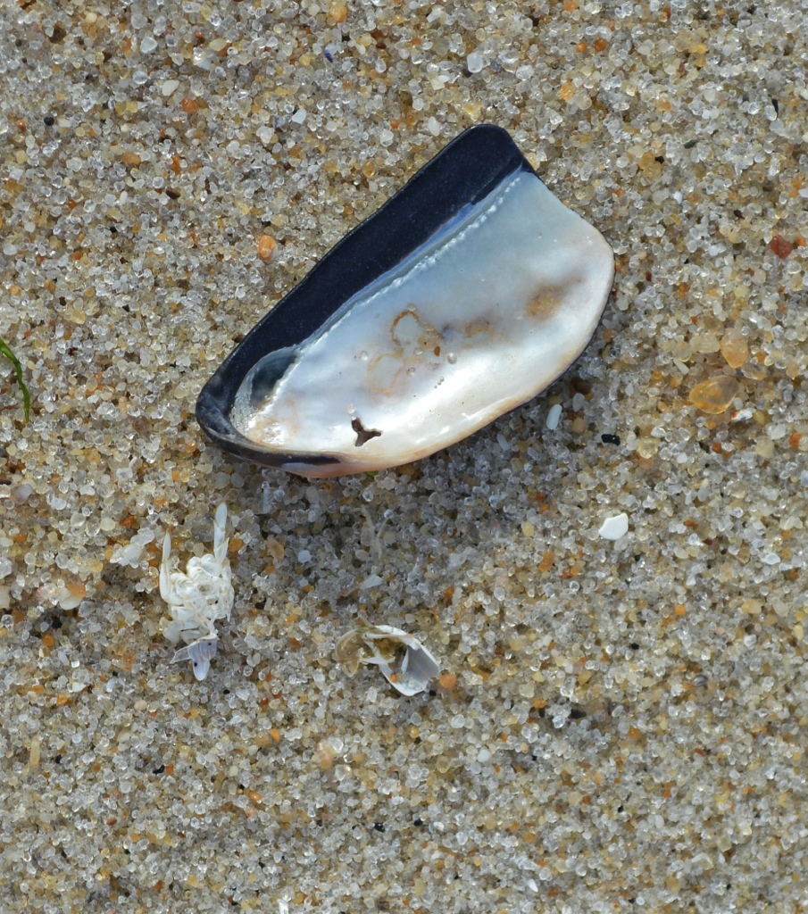 A piece of a mussel shell positioned perfectly beside the remainders of a gull’s breakfast. Maybe I was tired, and it was just a bit too early in the morning, but it sure looked like a shark’s head going after the crab.