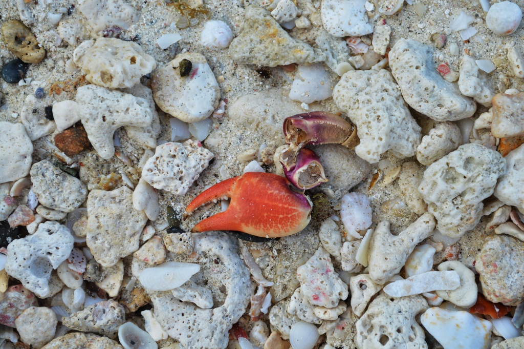 Even these minimal remains make a statement on the monochromatic beach. This color has not been added or changed . . . the claw was the color of the sunrise that had just ended when I walked the beach. While I would much rather have seen the creature alive and enjoying life on the coral reef, I appreciate its beauty even after death.