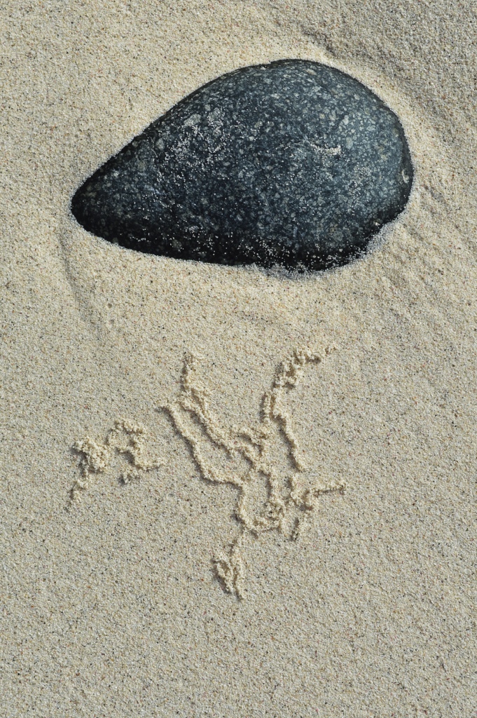 Regardless of their origin, the juxtaposition of this particular rock next to these interesting patterns on the sand is really lovely. I could stare at this for a long, long time. It is simply restful.