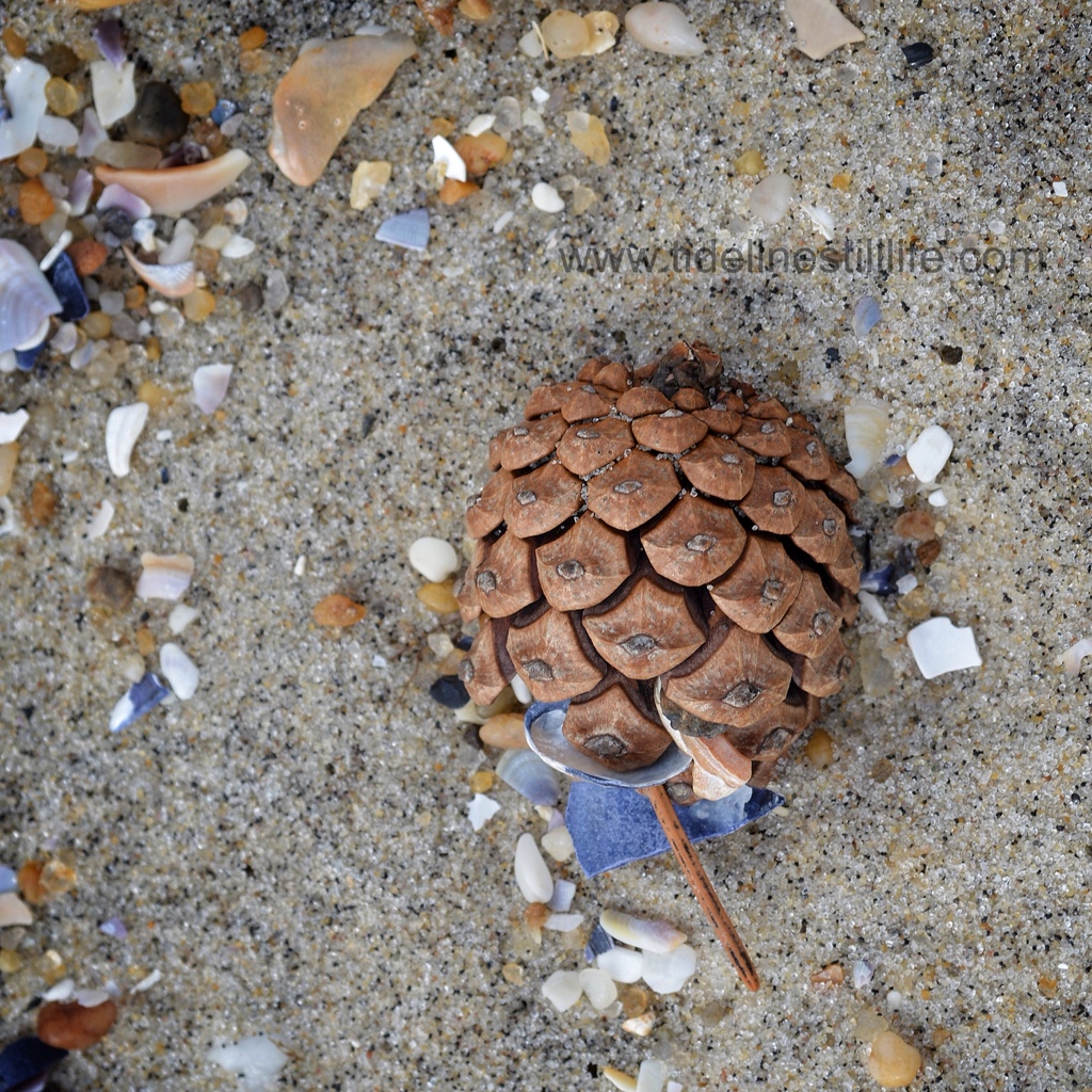 A Rolling Pinecone Gathers . . . Posted on January 23, 2014 by Maggie Beck 1 . . . Much more than a rolling stone. I love how the shell fragments and the stick became stuck in the pinecone as it blew across the beach and tumbled to the tide line, where I found it. Share this: Click to share on X (Opens in new window) X Click to share on Facebook (Opens in new window) Facebook Click to email a link to a friend (Opens in new window) Email Click to share on Pinterest (Opens in new window) Pinterest Like Loading... Related