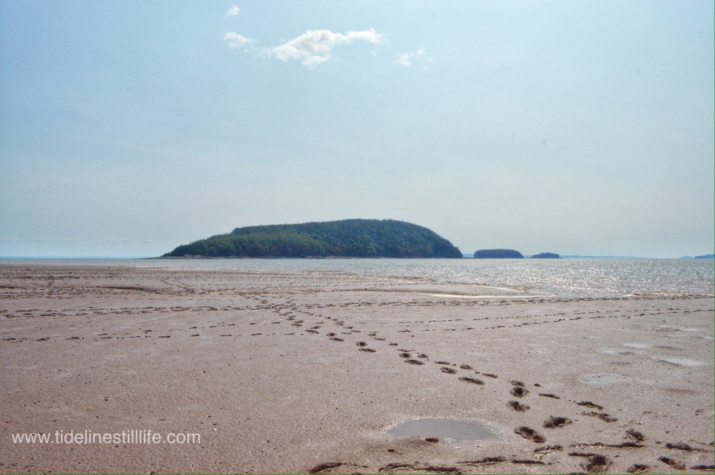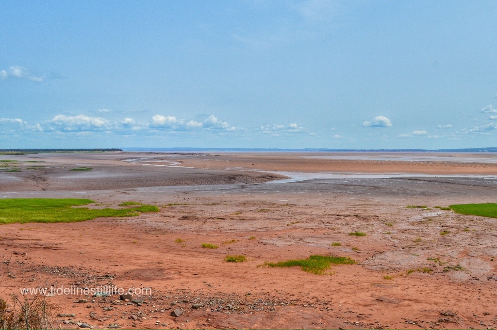 An anniversary trip to Nova Scotia provided us with a number of new tide lines to visit and to photograph. The first stop was the Bay of Fundy, which experiences one of the highest vertical tidal ranges in the world. The Minas Basin, pictured here, is where the tide is most extreme. Last weekend the tidal extreme was approximately 40′ (over 12 meters).