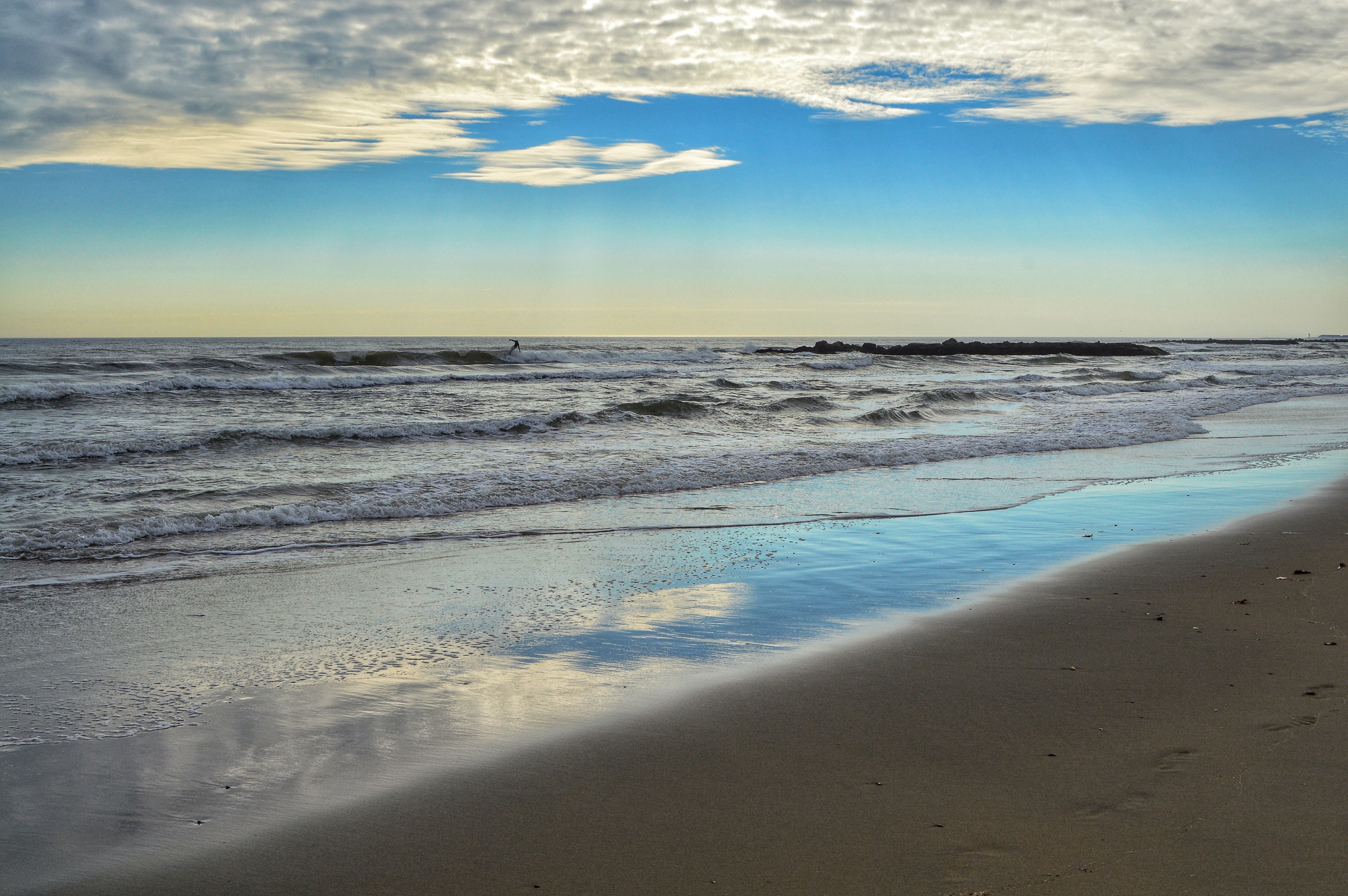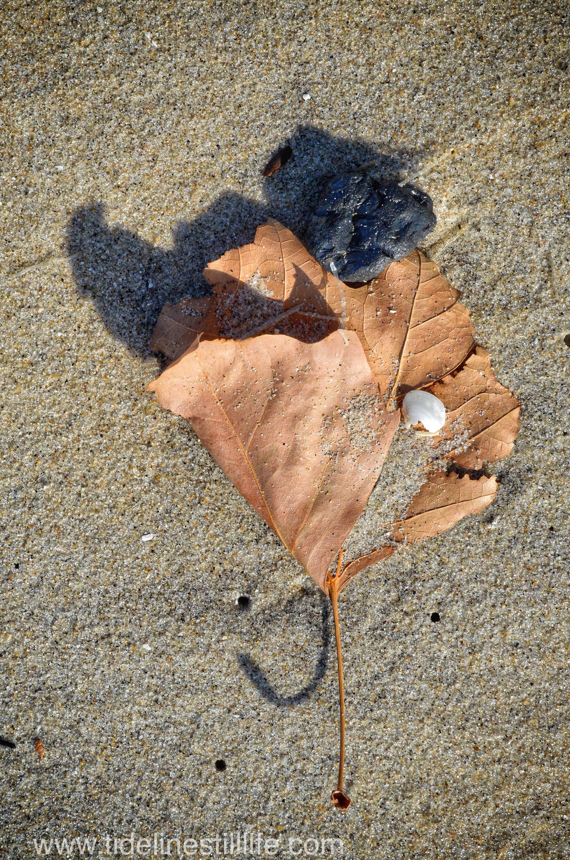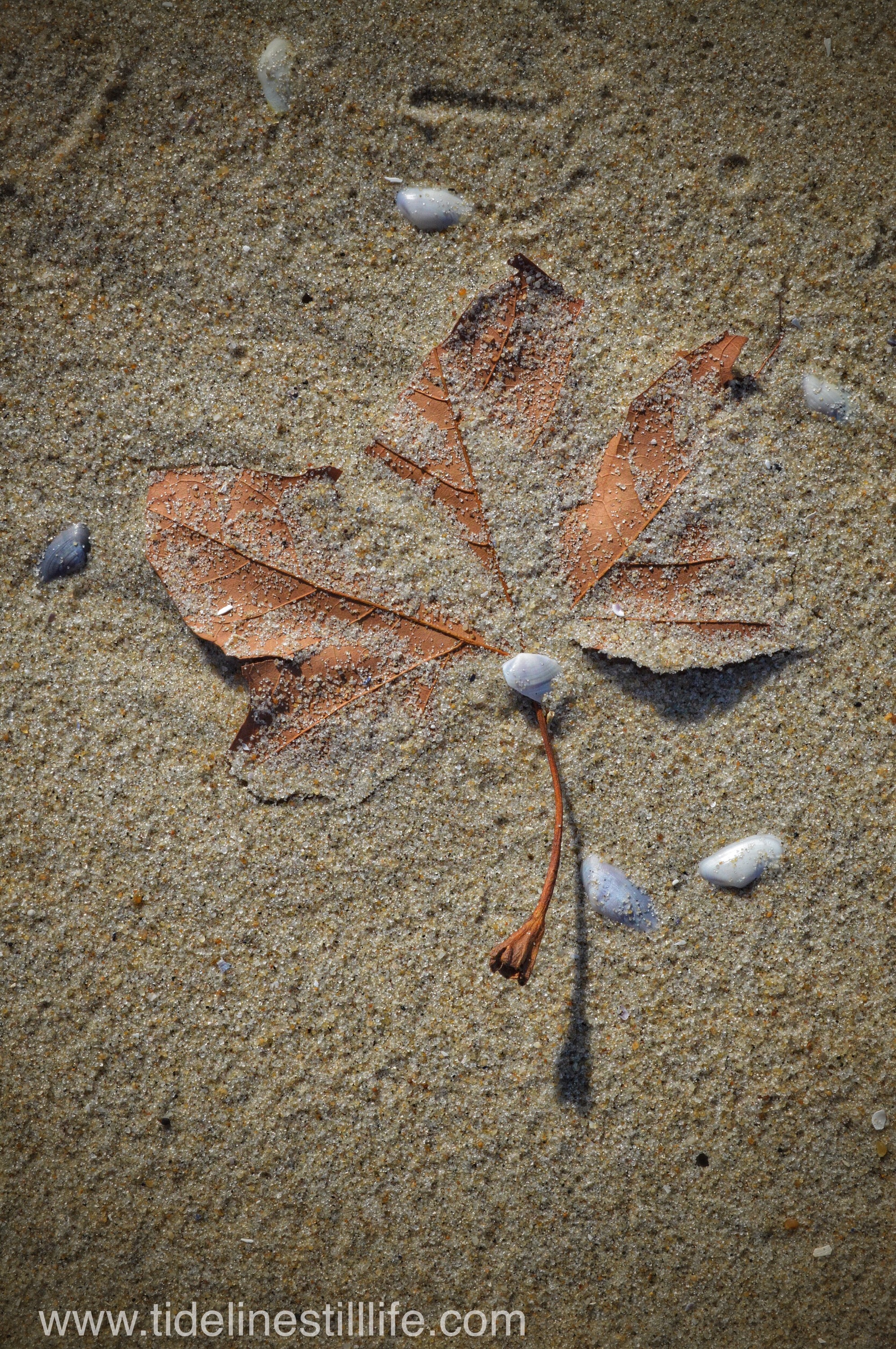 Even after having walked and photographed many beautiful beaches this year, my favorite tide line to walk along and photograph is a still a several block stretch here in New Jersey. There is not much variety in the marine life from week to week, but it is where I am most comfortable. With repetition, though, I am learning to look closely and to identify the remarkable in the familiar. I love how the winds toss holly and dried maple leaves to the edge of the ocean, and how the waves bring up ordinary mussel shells and marine life and deposit them in extraordinary arrangements. An occasional dried hydrangea blossom tangles with a crab carapace, and rainbow-hued coquinas scatter like tiny jewels. The early morning light creates dramatic and sometime humorous shadows. I love this tide line, this short stretch on New Jersey’s long coast. It is familiar, it is always inspiring, it is home.