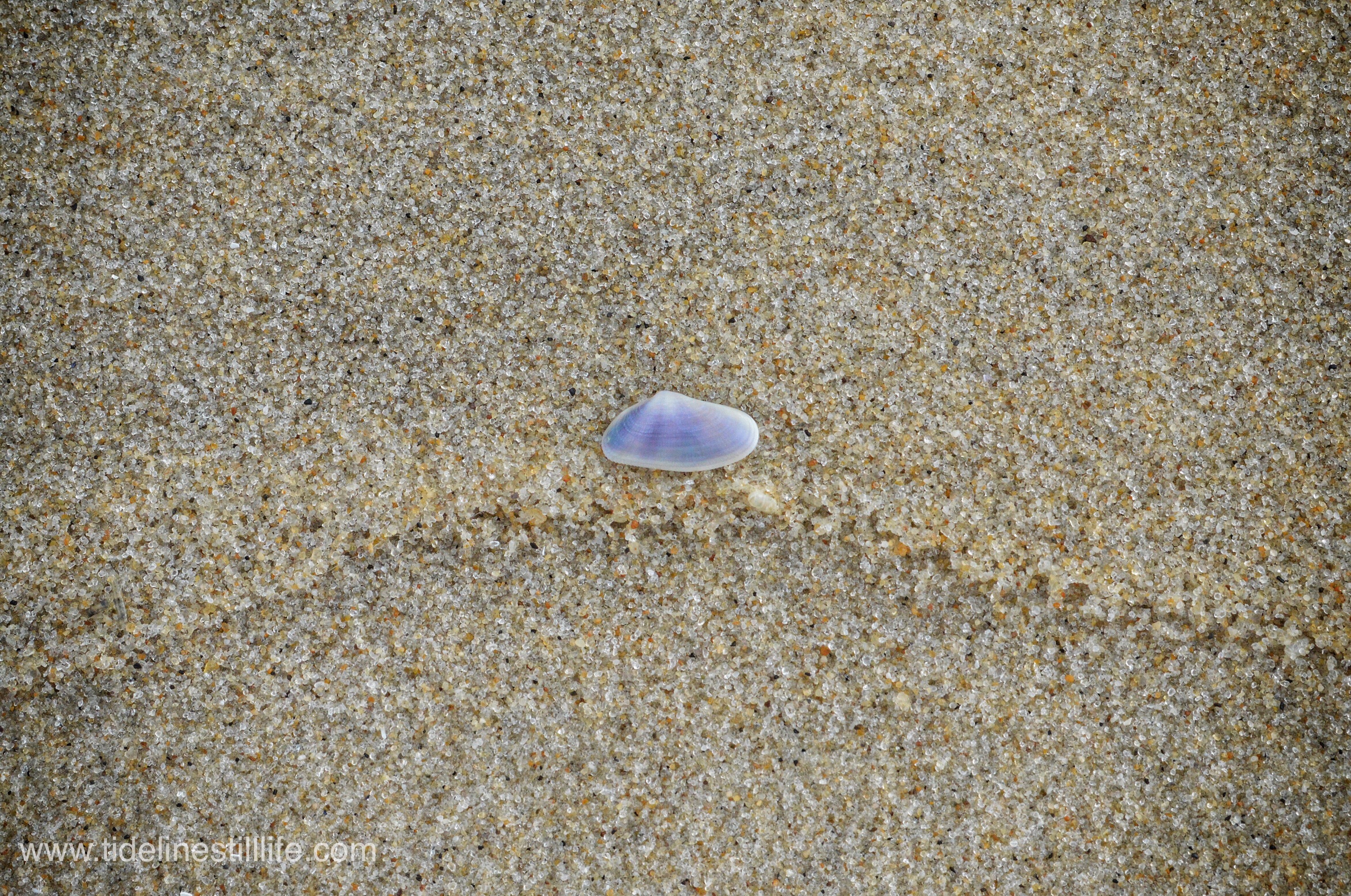 I’m not thrilled with this overall composition, and there were lots of little bits of things around these two items. As you know, I don’t arrange or move anything before I take a photograph. However, the juxtaposition of this golden “angel wing” (an operculum) and blue-hued clam shell was too lovely to ignore.