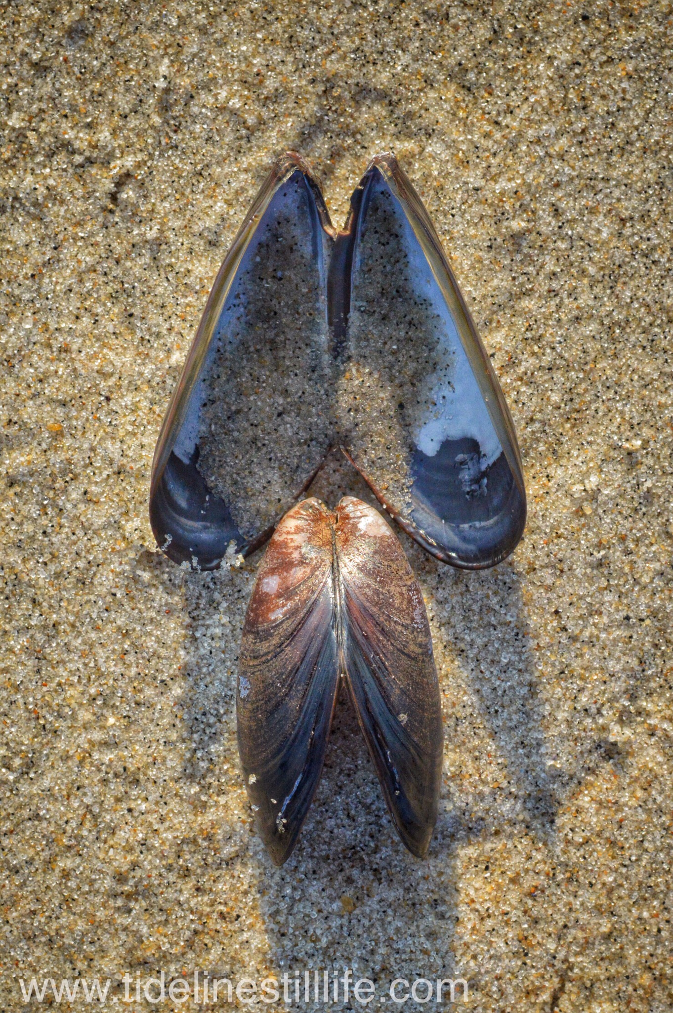 Tagged beach, beauty, hidden, hidden beauty, Mussels, ocean, rainbow, sand, still life, surprise, tide line