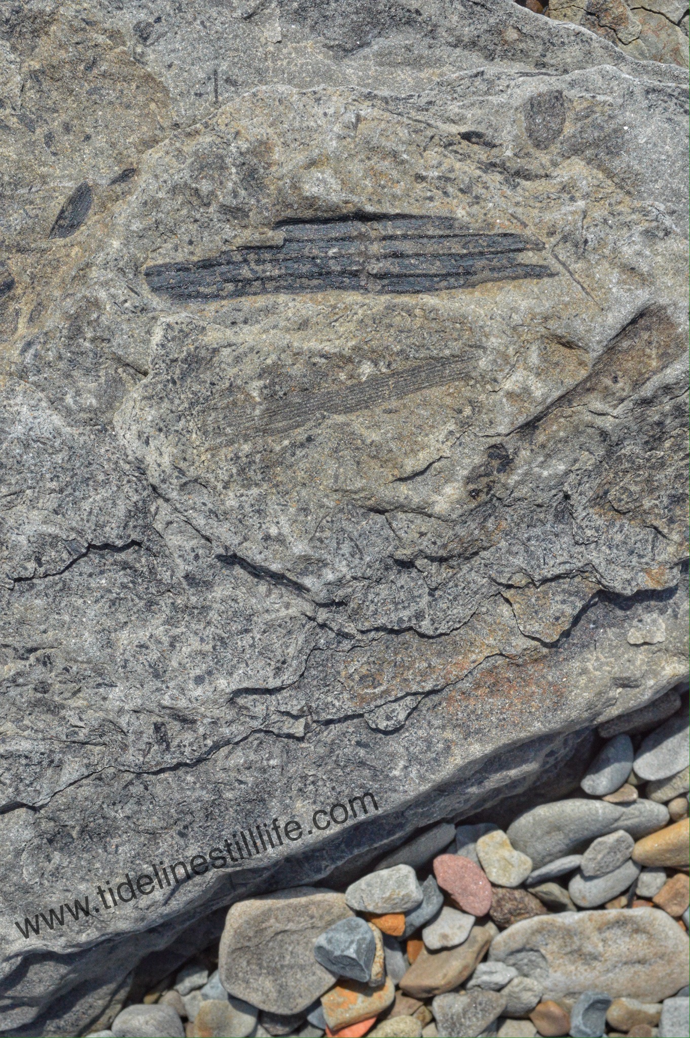 It is a different sort of tide line that presents itself at Joggins Fossil Cliffs, and other pebble beaches. Where I usually look for compositions that prominently include marine life (plant and/or animal) on a sand background, pebble beaches do not offer this sort of tableau. Instead, a pebble-beach tide line is a puzzle of shapes and textures that almost require a refocusing of one’s eye and thoughts before focusing a camera lens.
