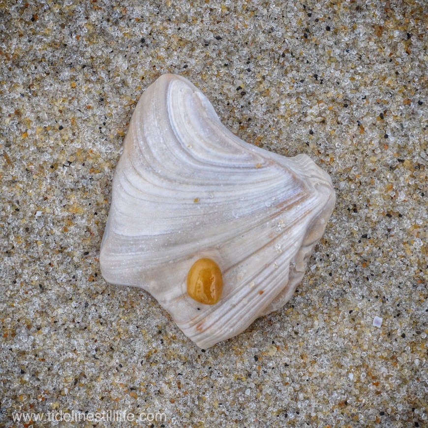 What a surprise as the receding tide arranged these pebbles and shell fragment! It was lucky to be there to see this, but it made me wonder what else I may miss with each wave.