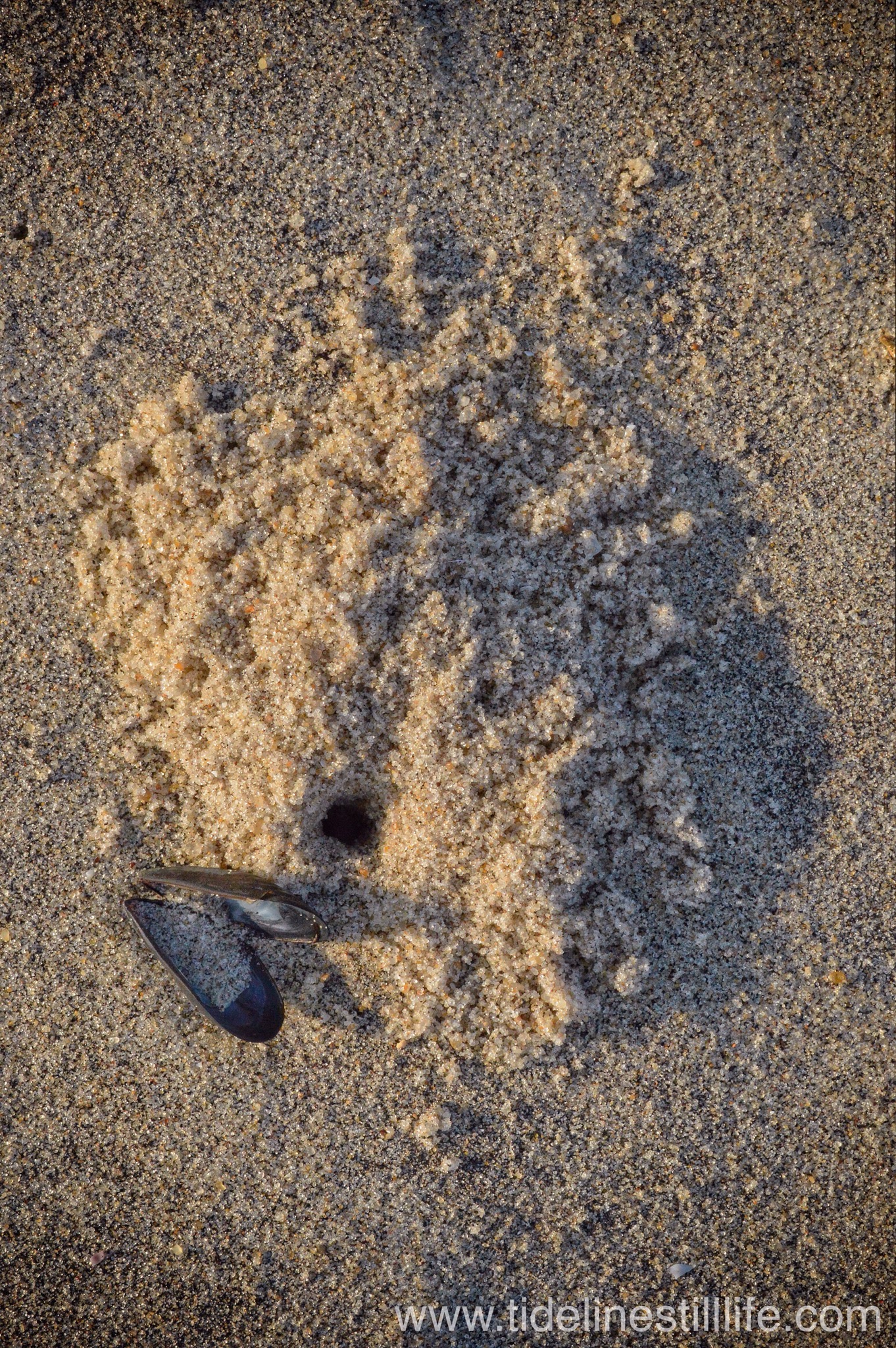 I find this photo particularly peaceful; the color of the stone, the five grains of sand on its surface, and the miniature reflection of the sun in the droplet all pull me in and serve as a reminder to relax. Enjoy.